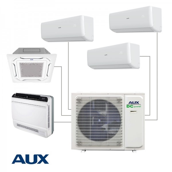 Мултисплит AUX AM5-H42/4DR3 е климатична система, работеща с едно външно и пет вътрешни тела от климатици AUX, които могат да бъдат различни по вид. Предоставя възможност за гъвкав монтаж и независим контрол на всяко вътрешно тяло.